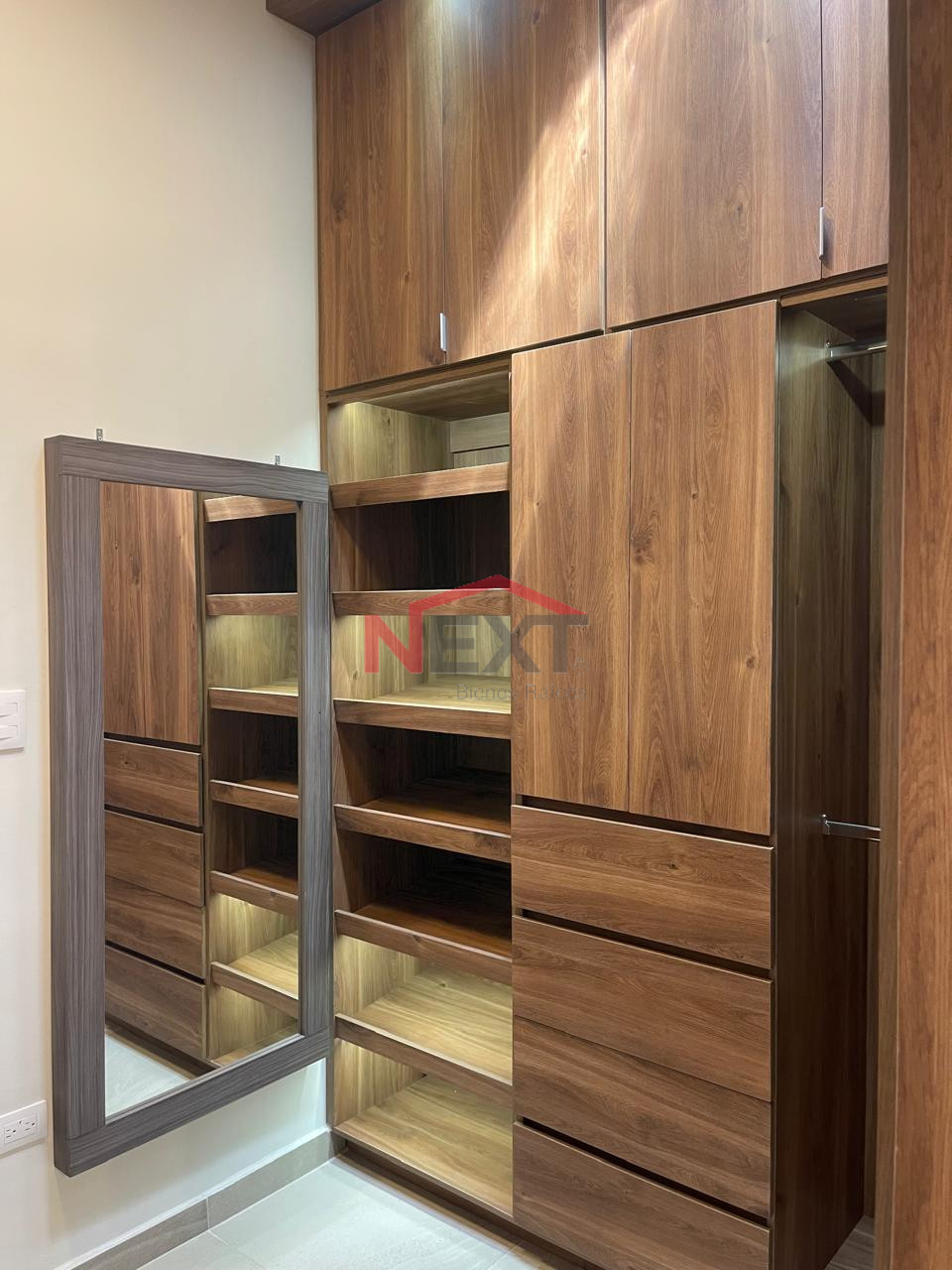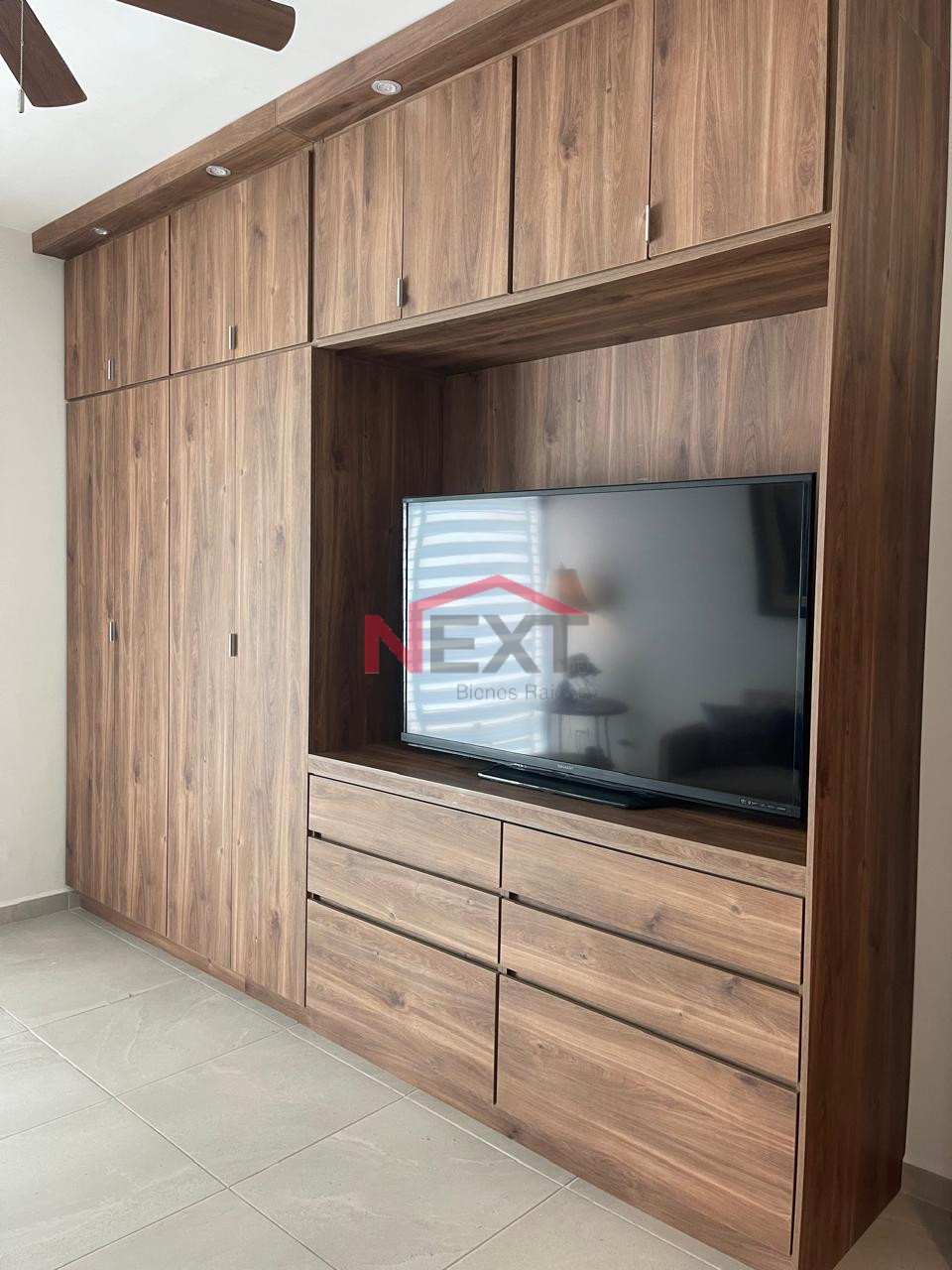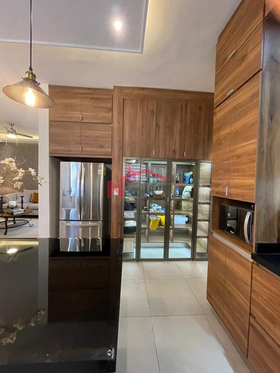Cocina: horno, refrigerador, estufa, alacena (puertas de vidrio), lavajillas , campana, microondas, cubierta de cuarzo , tipo de madera ( carpinteria en toda la casa es nogal )